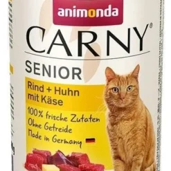 Animonda Carny Senior est un aliment complet à base de viande, avec des morceaux faciles à mordre, pour les chats âgés de 7 ans et plus