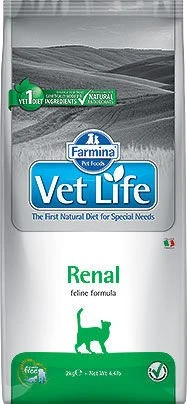 Farmina Vet Life Renal est un aliment diĂ©tĂ©tique complet pour chats utilisĂ© pour soutenir la fonction rĂ©nale en cas d’insuffisance rĂ©nale chronique ou temporaire.