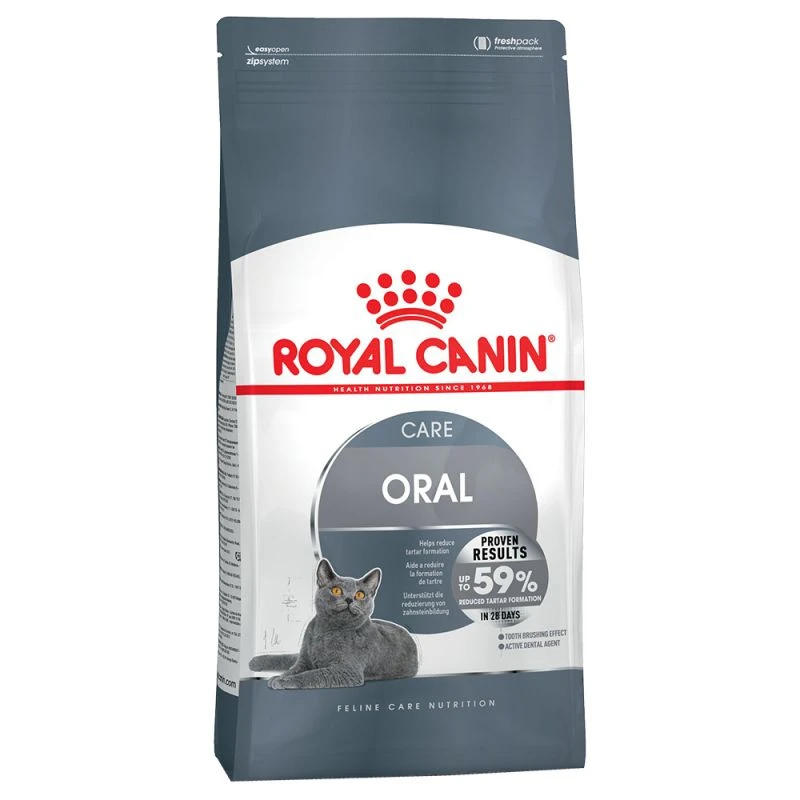 ROYAL CANIN Oral Care est un aliment équilibré qui favorise l’hygiène buccale et réduit la formation de tartre chez le chat adulte. L’aliment a une teneur élevée en protéines, ce qui favorise le maintien de la masse musculaire. ROYAL CANIN Oral Care a un double effet : un effet de nettoyage mécanique et un effet de nettoyage chimique.