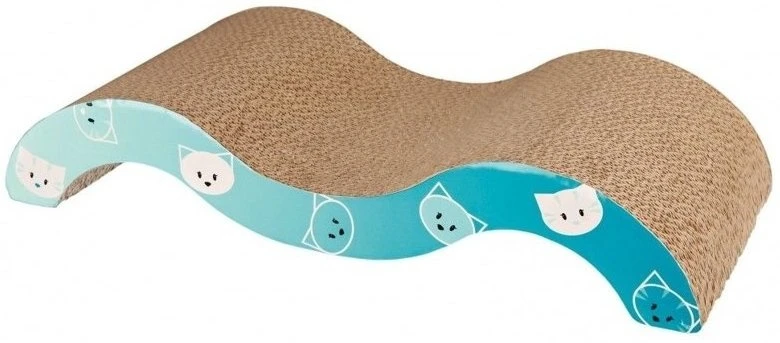 Le griffoir présenté ici est une alternative légère, positionnable et facile à transporter aux griffoirs standards sur pied. Il a une forme ondulée pour que le chat puisse s’asseoir dans le creux et gratter les bourrelets, il peut aussi étirer son corps. Le griffoir est fabriqué en carton et peut également être utilisé comme lit. Il s’agit d’un matériau 100% naturel et respectueux de l’environnement. Il s’adapte parfaitement à n’importe quel endroit de la maison et il est léger, donc facile à transporter. Le côté du grattoir a été décoré d’un motif sympathique.
