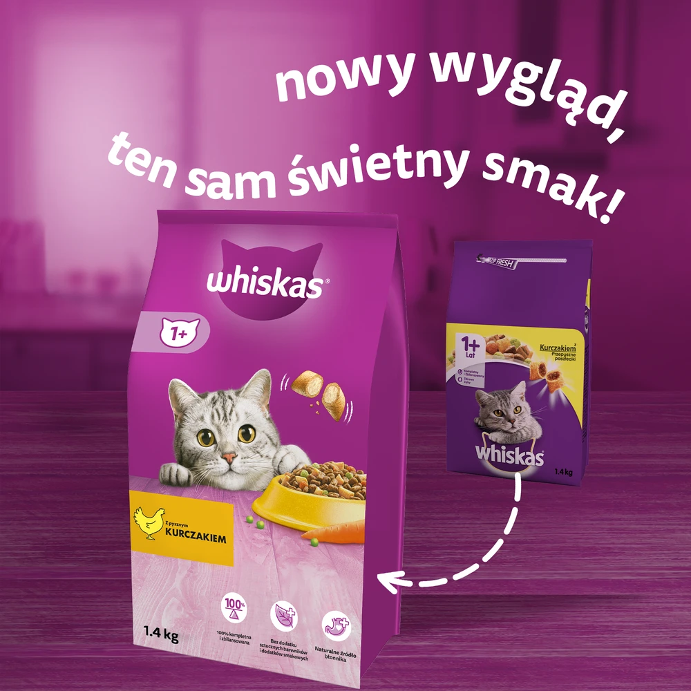 WHISKAS Adult 1.4 Kg – Aliment Complet Sec Pour Chats Adultes, Avec Du Poulet Délicieux